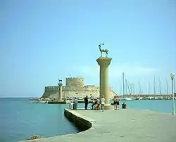 Rhodos by ligger på øen Rhodos en del af Dodekaneserne. Rhodos by er nærmest en fæstning. Den gamle bydel er uberørt de seneste 400 år. På Mandriki havnen skulle resterne af Kolossen på Rhodos ligge.