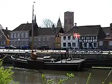 ![]() Ribe Å, hvor den løber ud af Ribe, set fra toppen af tårnet på Ribe Domkirke | |