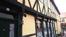 Bygningen er en tolænge bindingsværksbygning i to stokværk. Længerne er anbragt i en vinkel på hjørne mellem Frisegade og Store Kirkestræde, der fører op til Klosterkirken. Den er gulkalket med et sadeltag i røde tegl.[2] Langs Store Kirkestræde er et udhæng på 1. sal, og knægtene mellem de to etager er rigt udskåret.[2][5][7]