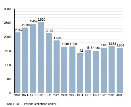 Byens befolkningstal kulminerede omkring år 1900. Siden faldt det, men det er blevet stabiliseret efter 2. verdenskrig.