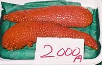 - Tarako – sejrogn, der er saltet, sommetider grillet.