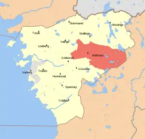 Navnet (1475 Rowelstorp) består af to dele, mandsnavnet Rolf og torp.[1]. Befolkningen steg fra 1810 (930 indbyggere) til 1870 (1.560 indbyggere). Derefter faldt den, så der i 1960 var 815 indbyggere i Rolfstorp. Siden er befolkningen steget igen.[4]