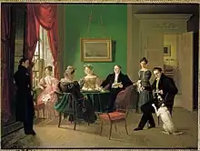 I perioden ca. 1820 – ca. 1870 er den danske litteratur mere eller mindre præget af den gren af romantikken, der hedder Biedermeier.[14] I Biedermeierlitteraturen bliver opmærksomheden i højere grad rettet mod den lavere verden. Det er dog ikke den lavere verden, som den er i sig selv, men derimod er det den lavere verden, som den ser ud i lyset fra den højere verden.