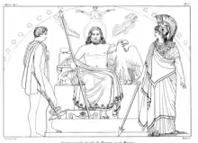 Den romerske religion og kultur blev først udviklet inden for en etruskisk sammenhæng, og senere under stærk indflydelse fra grækerne i Syditalien.[2] Romernes oprindelige religion bestod ikke primært af en serie myter, men af en kompleks og stadig her og nu-interaktion mellem guder og mennesker. Guder var tilstede i alle synlige fænomener, træer, floder, huse, dyr, personer osv., hvert eneste sted, ting og menneske havde deres egen guddom, så antallet af guder var uendeligt. I spidsen for guderne stod en triade, der bestod af himmelguden Jupiter, krigsguden Mars og folkeguden Quirinus. Allerede tidligt blev fremmede guddomme importeret særligt fra de græske områder.