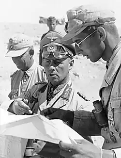 ![]() Erwin Rommel med hjælpere i Nordafrika, 1942  | |