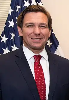 Ligeledes har DeSantis gjort sig til frontperson mod bl.a. præsident Bidens vaccinekrav og krav om at bære mundbind i bl.a. skoler.[48][49][50][51] Dette skabte stor opmærksomhed, hvilket bl.a. medførte, at hans politiske modstandere (heriblandt Demokraterne og præsident Biden) i særligt grad har fremhævet og kritiseret DeSantis' håndtering af pandemien. Omvendt har DeSantis politiske tilhængere hyldet hans håndtering af pandemien, herunder hans kritik og modstand mod bl.a. præsident Bidens Corona-relateret restriktioner. I november 2021 valgte DeSantis at underskrive flere love foran en menneskeskare i byen Brandon, Florida. De pågældende love havde til hensigt at gøre op med vaccinekrav og restriktioner. Byen, Brandon, var nøje udvalgt, idet det var en reference til et anti-Biden (og Mainstream media) meme, der gik viralt i den pågældende periode – den fremmødte folkeskare begyndte da også at råbe "Let's go Brandon" i forbindelse med DeSantis' tale.[52]