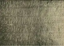 ) antages at repræsentere en uddød Påskeøspalme,[lower-alpha 3] som forsvandt fra øens pollenpost omkring år 1650, hvilket indikerer at skriften selv er ældre endnu.[7]