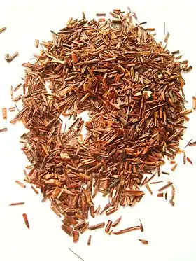 De tørrede blade og kviste bruges som te, i kosmetikindustrien og som naturmedicin. Teen kaldes ofte fejlagtigt for "rød te" på grund af sin dybt rødbrune farve, skønt den ikke stammer fra tebusken. Det er også almindeligt at benytte ordet rooiboste. Rooibosteen har en sødlig, let røget smag, og i modsætning til sort te indeholder rooiboste ikke koffein. Dette gør teen ideel som aftente, da den ikke er opkvikkende, derimod let beroligende.