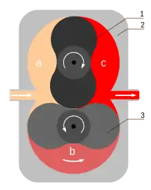 Roots-kompressoren er en skruekompressor som arbejder efter fortrængningsprincippet. Luften komprimeres ved at voluminet formindskes i kompressionsrummet mellem rotor og kompressorhus. Navnet kommer fra brødrene Philander og Francis Roots, som fik patent på en luftpumpe i 1860 efter dette princip.