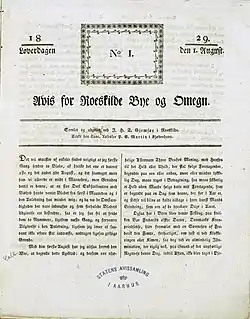 - Digitaliserede udgaver af Roskilde Avis i Mediestream