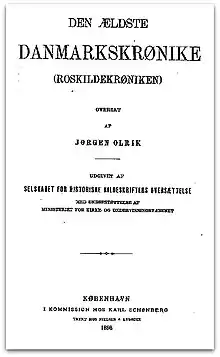- Olrik, Jørgen, red. (1898), Den Ældste Danmarkskrønike (Roskildekrøniken), København: Selskabet til Historiske Kildeskrifters Oversættelse