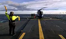 Rotors running refuelling om bord på et skib af Thetis-klassen