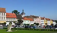 Det historiske centrum består af slotskomplekset og Karlspladsen ( Karlovo náměstí), Hus- pladsen ( Husovo náměstí), Purkyně- pladsen ( Purkyňovo náměstí) og Jan af Dražice-pladsen (náměstí Jana z Dražic). Rådhuset ligger på Karlspladsen. Det er en pseudo-renæssancebygning fra 1869.[6] Det gotiske vagttårn af sten er den eneste bevarede rest af den gamle bys befæstninger. Det er åbent for offentligheden som et udsigtstårn.[6]