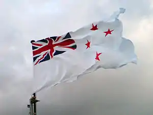 Indtil 1960'erne, havde RNZN, ligesom de andre dominions, benyttet White Ensign som et fælles orlogsflag. Efter krigen, hvor Storbritanniens herredømme langsomt slap sit tag, blev landenes udenrigspolitikker efterhånden forskelligartede, og der opstod et ønske og behov for at kunne kende de forskellige dominions fra hinanden – især hvis en blev involveret i en konflikt og en anden ikke var. Derfor valgte New Zealand i 1968 at skabe sit eget orlogsflag hvor man beholdte Union Flag i det øverste hjørne, men erstattede Georgkorset med Sydkorsets konstellation der ligeledes er at finde på landets flag.
