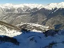 Det lave basisområde i Roza-dalen ved Mzymta-floden ligger 560 meter over havet. Den højeste lift er Caucasus Express en gondolbane, som fører op til 2.320 meter over havet med en højdeforskel på 1.760 meter. Det primære basisområde for alpint skiløb er Roza Plateau 1.170 meter over havet og med en højdeforskel på 1.150 meter fra toppen. Besedka er midt-området 1.350 meter over havet og den nederste station på Caucasus Express; som har en midterstation på Roza-1600, omkring 1.600 meter over havet. I den østlige del af skisportsstedet ligger Roza Stadion, 940 meter over havet, som er målområde for de alpine discipliner.[2]
