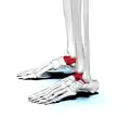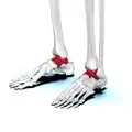 Rullebenets (talus) placering i forhold til de øvrige fodrodsknogler.
