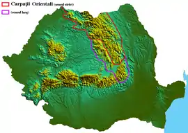 De østlige Karpater er opdelt i tre geografiske grupper; den rumænske tilgang er vist ved at tilføje følgende forkortelser til navnene på enheder i Rumænien: