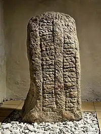 | Translitteration | Side A tuki : sati : stin : þąnsi : iftiR : ufla : faþur : sin : harþa : ku