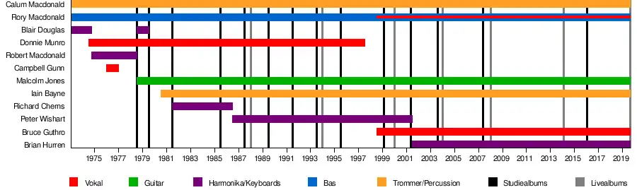I 1974 blev Donnie Munro medlem af bandet som forsanger, og de begyndte at give koncerter uden for Skye, hvor gruppen var startet. I slutningen af samme år forlod Blair Douglas bandet og blev erstattet af Robert MacDonald. Bandet forsatte med denne besætning frem til 1978, hvor Robert MacDonald igen forlod bandet og blev erstattet af Blair Douglas, som vendte tilbage, samt Malcolm Jones, som blev den nye guitarist.