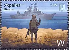 - The sketch for the postage stamp „Russian warship, fuck you!“ chosen. I: ukrposhta.ua. 12. marts 2022. Ukrposhta.ua: "The sketch for the postage stamp russian warship fuck you chosen".
