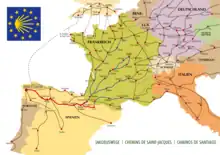 Camino Francés begynder ved pyrenæerpassene Somport (Aragonien) og Roncesvalles (Navarra), hvorfra to strenge fører til Puente la Reina (Navarra). Derfra fører vejen over Burgos, León og Astorga til Santiago de Compostela. Denne vandrevej er også markeret som spansk fjernvandringsvej GR-65. [1]