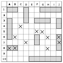 Der spilles på fire plader, to for hver spiller. Pladerne er typisk kvadratiske – som regel 10 × 10 – og hvert enkelt felt på pladerne er identificeret ved bogstav (kolonne) og nummer (række).