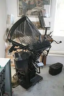 En anden type sættemaskine var Tolbert Lanstons Monotype fra 1890. Den er karakteristisk ved at støbe løse typer i stedet for en sammenhængende linje.