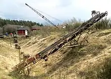 Hejseværk og gravemaskine ved Brunkulsmuseet