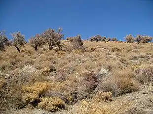 Arten er naturligt udbredt fra Iran over Pakistan og Afghanistan til Tibet og Sinkiang i Kina. Den er knyttet til lysåbne voksesteder med tør og veldrænet, gerne kalkholdig jord. I Chiltan-Hazarganji National Parkens bjergrige, tørre landskab i Baluchistan, Pakistan, findes arten nær vandskellet sammen med bl.a. agermorgenfrue, hyrdetaske, Daphne oleoides (en art af dafne), esparsette-arter, europæisk heliotrop, filtbladet kongelys, flyvehavre, gedeøje-arter, gulhvid evighedsblomst, lancetvejbred, ledris-arter, liden tvetand, Melica persica (en art af flitteraks), Nepeta bracteata (en art af Katteurt), Perovskia abrotanoides (en anden Perovskia), smalbladet timian, Stipa arabica (en art af fjergræs), strandmalurt og taghejre[1]