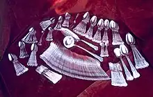 Derudover fremstilles fade og skåle af sølv, ligesom kaffekander, flødekander og sukkerskåle. Sjældnere ses dækketallerkner af sølv.