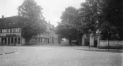 ![]() Indgangen til Søndre Kirkegård overfor Ridehuset ca. 1920. | |