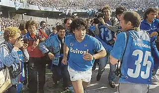 I de første sæsoner efter Maradonas ankomst(en 8. plads i 84/85 & en 3.plads i 85/86) havde holdet svært ved at spille med i den rigtigt sjove ende af ligaen. I 1985 vandt lille Hellas Verona sensationelt mesterskabet med Preben Elkjær på holdet, og i 1986 vandt Juventus med Michael Laudrup, men i 1986/1987 var det blev Napolis tur. Med Ottavio Bianchi som træner endte man tre point foran Juventus, og jublen kunne bryde ud i den store, og efter europæisk målestok fattige, storby. Man vandt oven i købet også Coppa Italia efter en finale mod Atalanta.