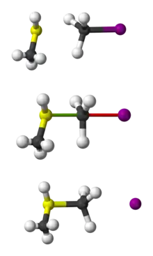 Eksempel på SN2 reaktion af CH3SH og CH3I.
