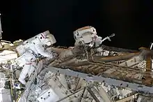 Missionens første rumvandring, rensning af Solar Alpha Rotary Joint (SARJ) på rumstationens solpaneler.
