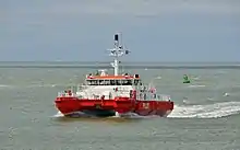 De to skrogdele er formet som ubåde og er opfundet allerede i 1938 af canadieren Frederick. G. Creed. Opfinderen fik patent i 1946, men hverken U.S. Navy eller Royal Navy var interesseret i opfindelsen og Creed døde uden at se sin opfindelse virkeliggjort.