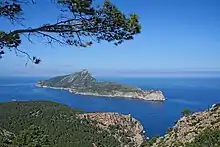 Når man ser på langs ad øen fra Sant Elm, kan den faktisk godt ligne en drage: Mod sydvest ser man ved Cap des Llebeig hovedet liggende i vandet, en rygrad med „skællene“ Puig des Aucells (312 m) og Na Pòpia (353 m) og en blødt udløbende hale ved Cap de Tramuntana mod nordøst.