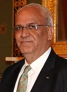 Saeb Erekat (født 28. april 1955, død 10. november 2020[1]) var en palæstinensisk chefforhandler i forhandlinger med Israel.[2] Han har også været generalsekretær for PLO.[2] Derudover var han forfatter og akademiker.[2] Han døde 10. november 2020 på et israelsk hospital af covid-19, hvortil han var blevet indlagt 18. oktober.[2] Tre år før sin død fik han foretaget en lungetransplantation på et amerikansk hospital, hvorfor han var ekstra udsat i forbindelse med covid-19-pandemien.[2]