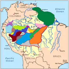 Udbredelsesområder for sakiaber i amazonområdet.[1]