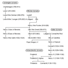 | Konradinerne | Slægten Guidonen | Liudolfingerne | |||||||||||||||||||||||||||||||||||||||||||||||||||||||||||||||||||||||||||||||||