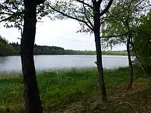 ![]() Nordbredden af Salten Sø er dækket af skov  | |