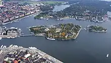 Langs kysten findes det mange smukke og imponerende bygninger, for eksempel Täcka Udden og Manillaskolan på Södra Djurgården og ældrehjemmet Danvikshem, møllen Tre Kronor og Saltsjöqvarn i Nacka.