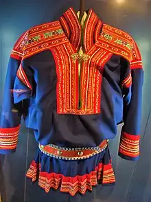 Samernes dragt er i sine væsentlige bestanddele ens for begge køn. Inderst på kroppen bæres en til lidt oven for knæet nående kofte af vadmel; oven på denne bærer man om sommeren en anden kofte af samme stof, om vinteren en pels af renskind. I sømmene er indsyet rødt og gult klæde som prydelse. Koften sammenholdes om livet af et bælte af uld eller læder, til hvilket en bredbladet kniv og ulige småting er fæstede. Halsen og brystet skjules af et klæde. På hovedet bæres en høj, kegledannet hue af rødt eller blåt klæde. Benene dækkes af benklæder af skind eller vadmel, der stikkes ned i støvlerne. Disse er af skind, med spidse, opadbøjede næser; de er fyldte med tørret hø, der gør tjeneste som strømper, og fastbindes om smalbenet med lange, brogede uldne bånd. Der findes lokale variationer i klædedragten, som især gør sig gældende med hensyn til huerne. I det nordligste Norge og Finland bærer mændene således en firkantet hue, mindende om en russisk kuskehue, medens kvinderne hos nordlapperne gerne bærer en med blonder og silkebånd prydet hue, der slutter tæt til hovedet. I de sydligste samedistrikter er mændene begyndt at aflægge nationaldragten, eller denne viser moderne påvirkning; således er mændenes kofte her gerne åben fortil, som en frakke.