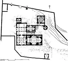 Hele kloster komplekset er omgivet af en mur og består af fem kirker, to gavitter, en skole, et bibliotek, Academie des magistros, en kirkegård og et klokketårn. Hovedbygningerne er grupperet omkring hovedkirken og er strukturelt forbundet med dette.[4]