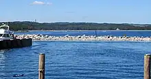 I begyndelsen af 1900-tallet lå Fregatten Jylland opankret i vigen, efter at godsejer Einer Viggo Schou fra den nærliggende Palsgård havde reddet den fra ophugning. Han lod den opankre i Sandbjerg Vig, som et slags vartegn og et godt trækplaster for Juelsminde. Om sommeren tog mange til Juelsminde for at se krigsskibet, der bl.a. havde deltaget i Slaget ved Helgoland i 1864; Små motorbåde sejlede folk ud til fregatten , og for kun 10 øre, kunne man få lov at komme om bord. Ved Schou´s død i 1925 blev Fregatten Jylland solgt til Marine-ministeriet, og slæbt til Langebro i København [1].