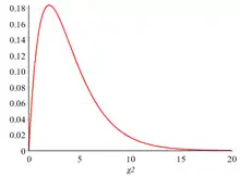 Eksempel: Tæthedsfunktionen for en -fordeling afhænger af antallet af frihedsgrader. Her er et eksempel med antallet af frihedsgrader