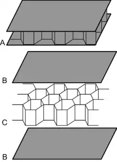 En sandwichkonstruktion er en konstruktion, der er sammensat af flere lag, der hver især består af forskellige materialer.