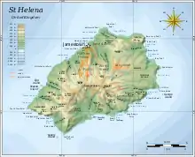St. Helena er et af de mest isolerede steder i verden, med over 2 000 km til nærmeste land. Øen har et totalt areal på 122 km² og består hovedsagelig af et kuperet terræn af vulkansk oprindelse. Øens højste punkt er Diana's Peak på 818 moh, som i 1996 blev øens første nationalpark. Der er flere holme udenfor øens kyst, inkluderet Castle Rock, Speery Island, The Needle, Lower Black Rock, Upper Black Rock, Bird Island, Black Rock, Thompson's Valley Island, Peaked Island, Egg Island, Lady's Chair, Lighter Rock (West), Long Ledge, Shore Island, George Island, Rough Rock Island, Flat Rock, The Buoys, Sandy Bay Island, The Chimney, White Bird Island og Frightus Rock, som alle er indenfor én kilometer fra kysten.