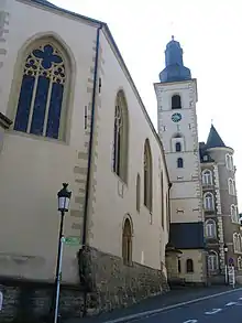 Kirken står på den ældste religiøse grund i byen. Den første kirke på stedet blev bygget i 987, som kapel for Greven af Luxembourg. Gennem årene er det blevet renoveret flere gange, og bygningen, som den ses i dag, er fra 1688. Bygningen kombinerer romansk stil og barok. 49°36′41″N 6°08′05″Ø