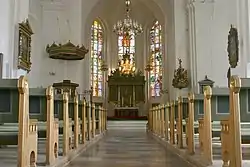 Lensmanden på Koldinghus Caspar Markdanners arbejde med forskellige kirker har sat et tydeligt præg på kirken; en sandstenstentavle fra 1591 på nordsiden af kirken og selve prædikestolen samt altertavlen.