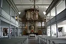 Af kirkens inventar kan nævnes en altertavle, som familien Rumohr lod opstille i 1641. Tavlen er udført af billedskæreren Hans Gudewerdt den Yngre fra Egernførde, som virkede i 1600-tallet. På tavlen ses Jesus fødsel, Korsfæstelsen, Opstandelsen og Himmelfarten. På sydvæggen findes et epitafium for Ditlev von Rumohr, som tjente Frederik 3. som oberstløjtnant og Christian 5. som dansk guvernør på Rygen. I kirkens østlige del findes familien Rumohrs gravkapel.